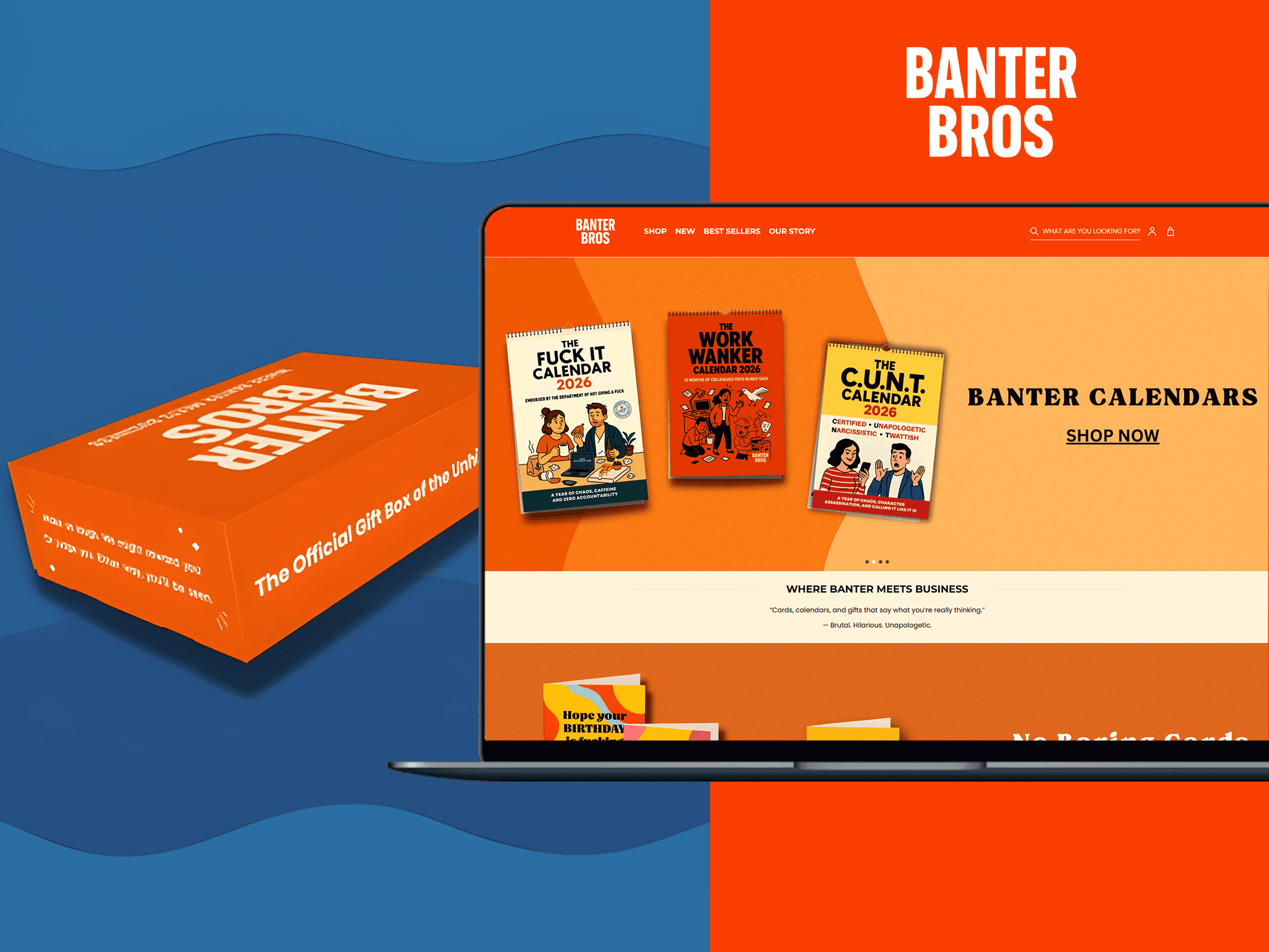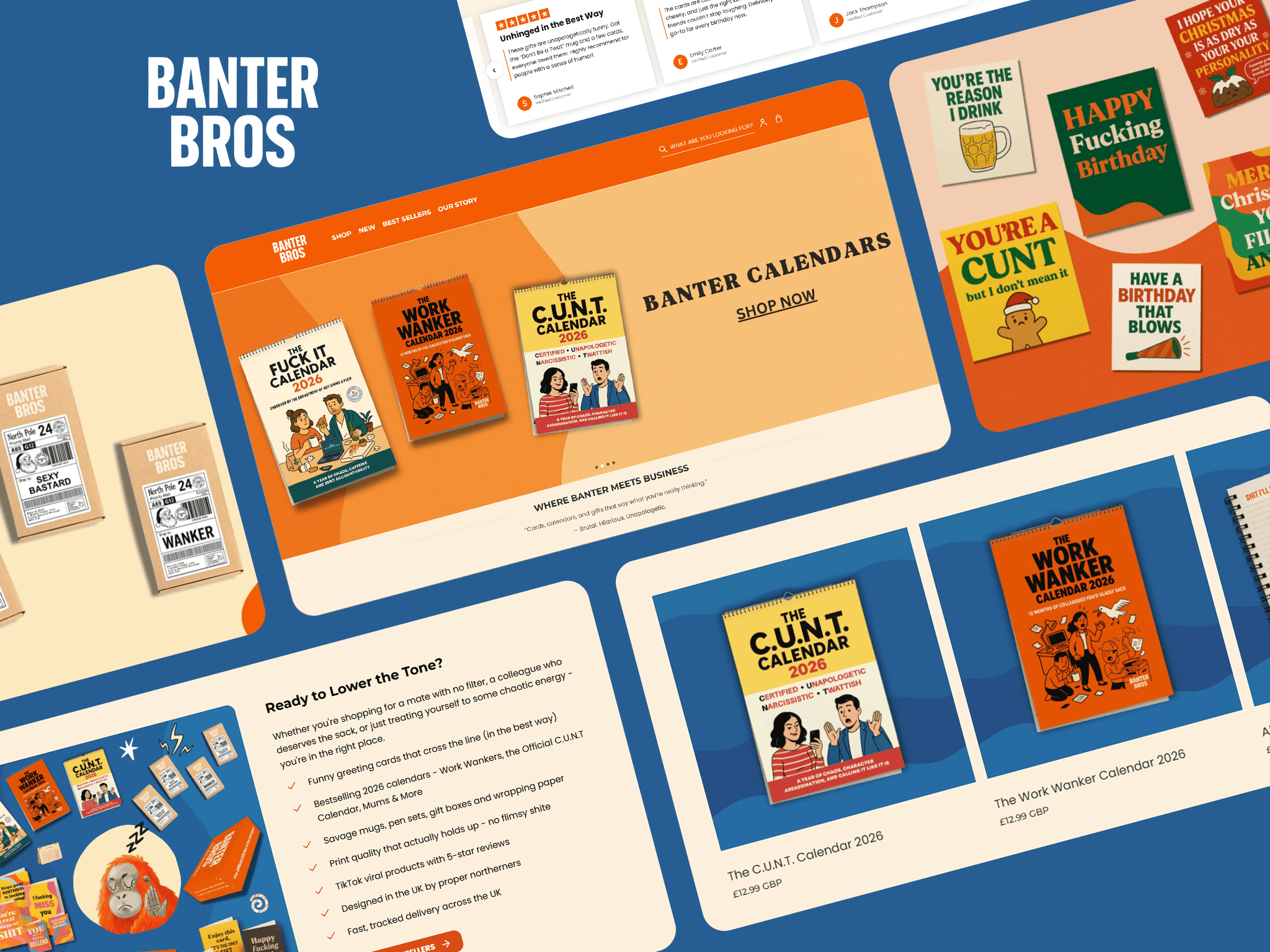 Banter Bros is a UK humour and lifestyle brand selling brutally funny gifts, greeting cards, calendars, and novelty items — designed in the UK, shipped from their North East HQ, and built on the kind of unapologetic British humour that's made them a TikTok phenomenon. With viral bestsellers including the Work Wanker Calendar and over 5 million TikTok views, Banter Bros has built a dedicated following of gift-givers who want something that says what everyone's actually thinking.