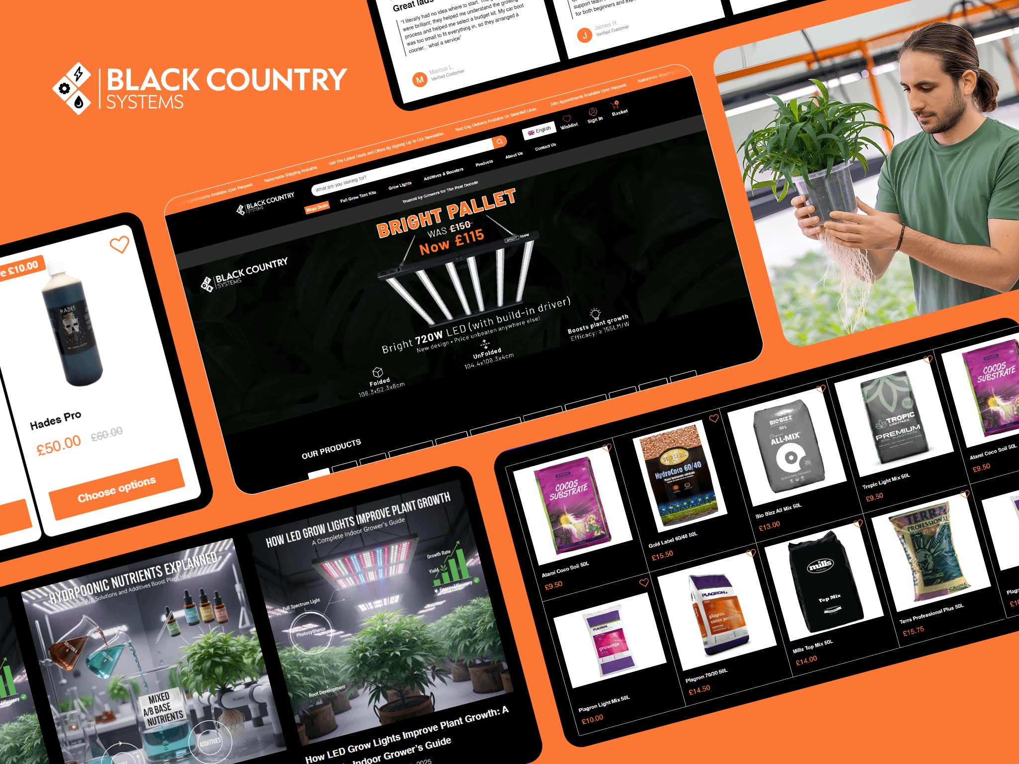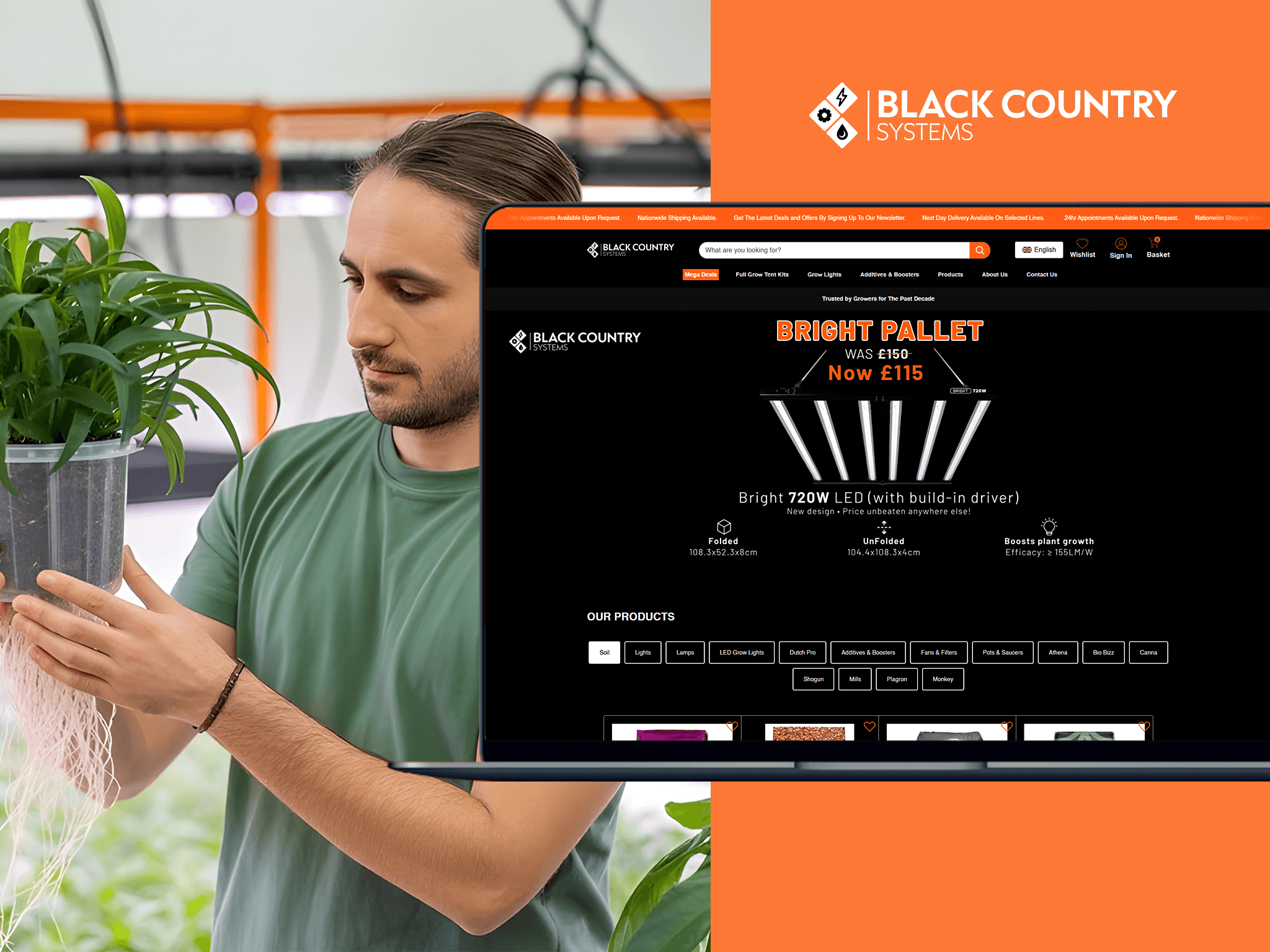 Black Country Systems is one of the UK's largest hydroponics and grow supply retailers, based in West Bromwich. They stock grow kits, complete growing systems, growing media, nutrients, lighting, tents, and everything a serious indoor grower needs — from established brands across the industry. With a physical superstore and a full online offering, the brand backs every sale with a price beat guarantee and discreet 24-hour delivery for online orders.