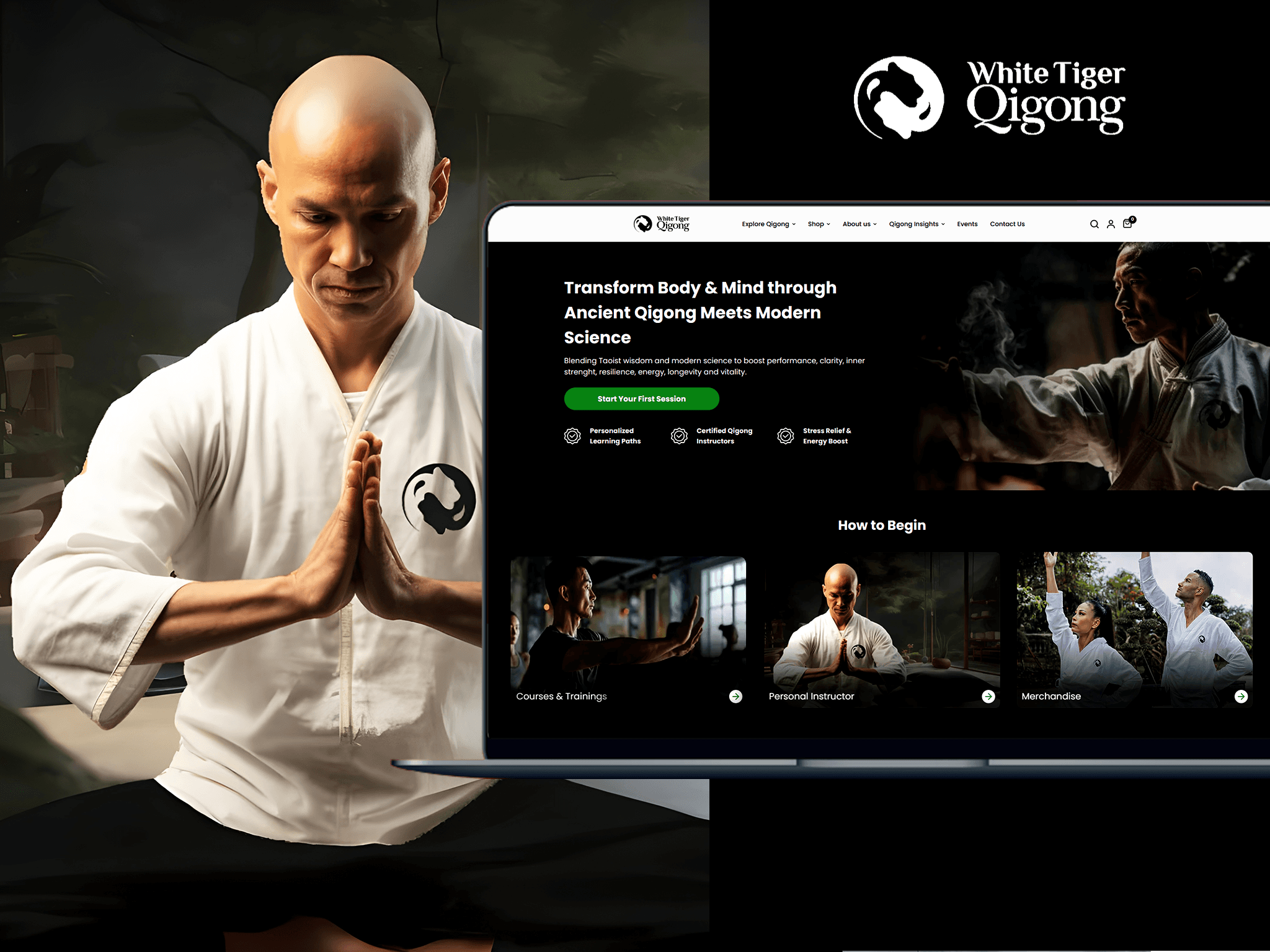 White Tiger Qigong is a global online academy founded by Master Tevia Feng, offering 40+ Qigong, breathwork, and teacher certification courses to students in over 80 countries. The brand blends ancient Taoist practice with modern sports science, serving both wellness beginners and professional instructors.