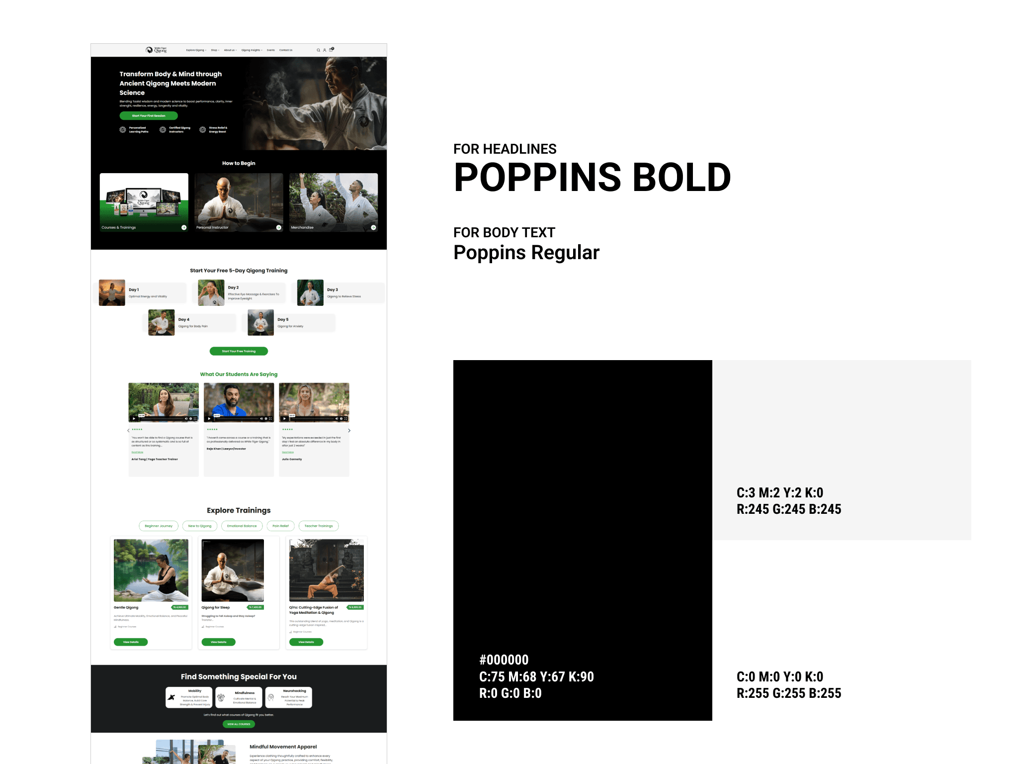 Course pages were rebuilt with CRO-focused layouts including social proof from verified students, clear curriculum breakdowns, and FAQ sections addressing the most common objections. The Taoist apparel collection was repositioned as a natural extension of the practice rather than a separate product line.