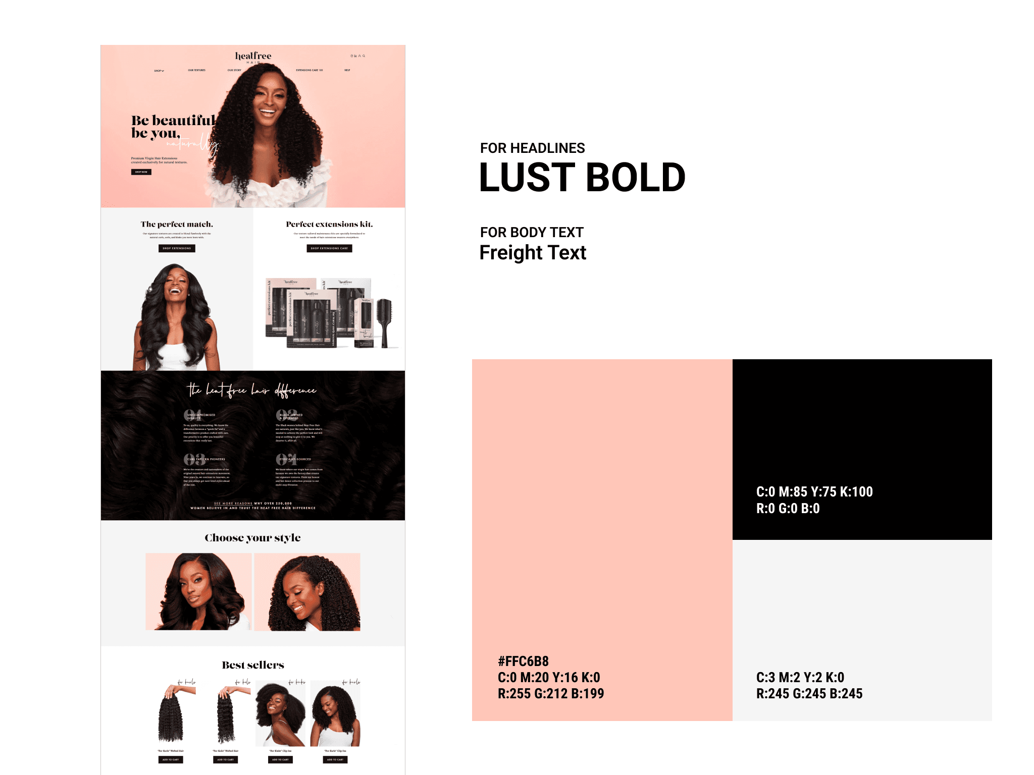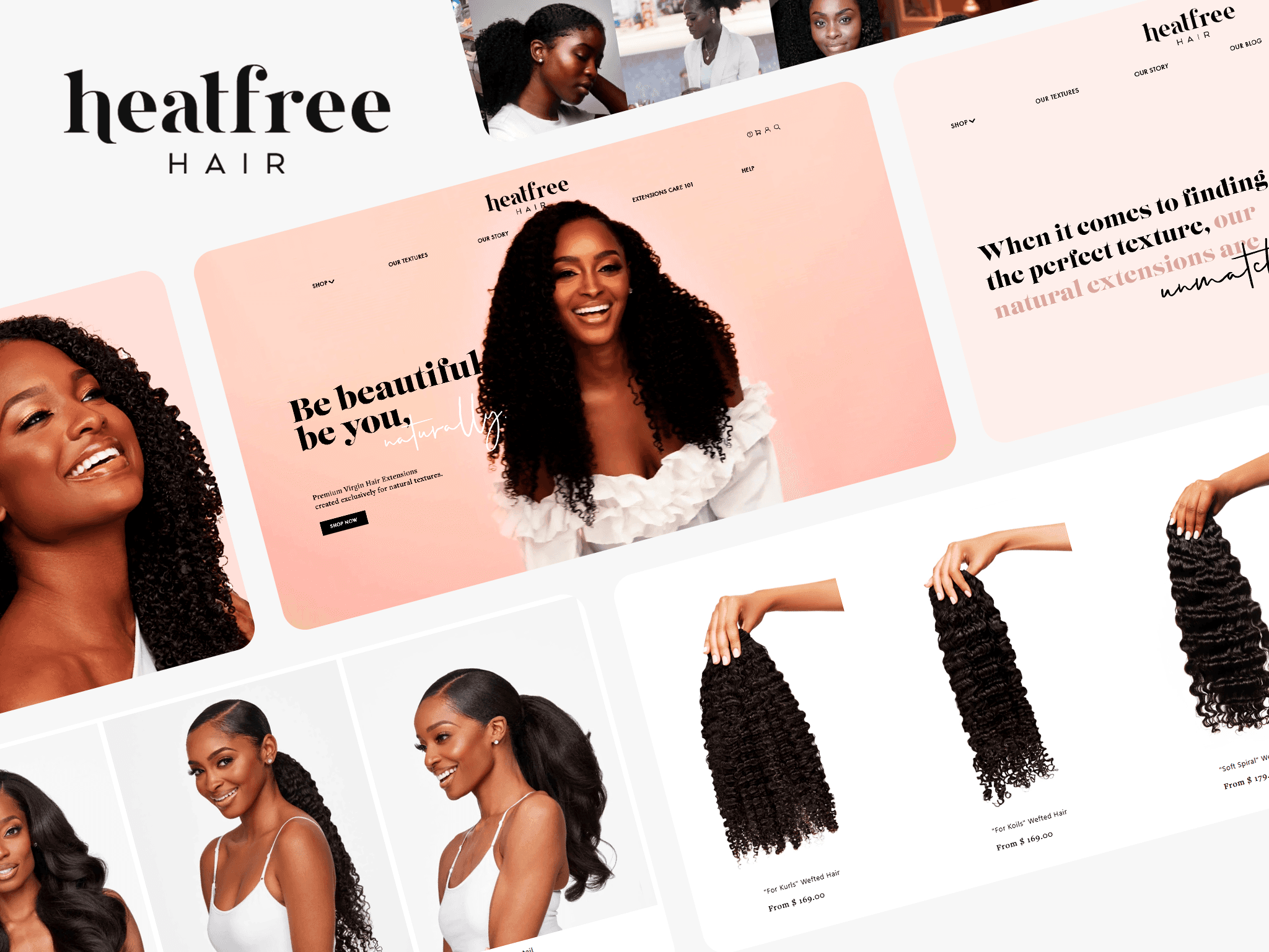 We restructured the store around texture-matching as the primary purchase journey. The homepage led with the brand's founding story and its emotional core — celebrating natural hair, not concealing it — before guiding customers into a discovery flow organised by texture type and styling goal.