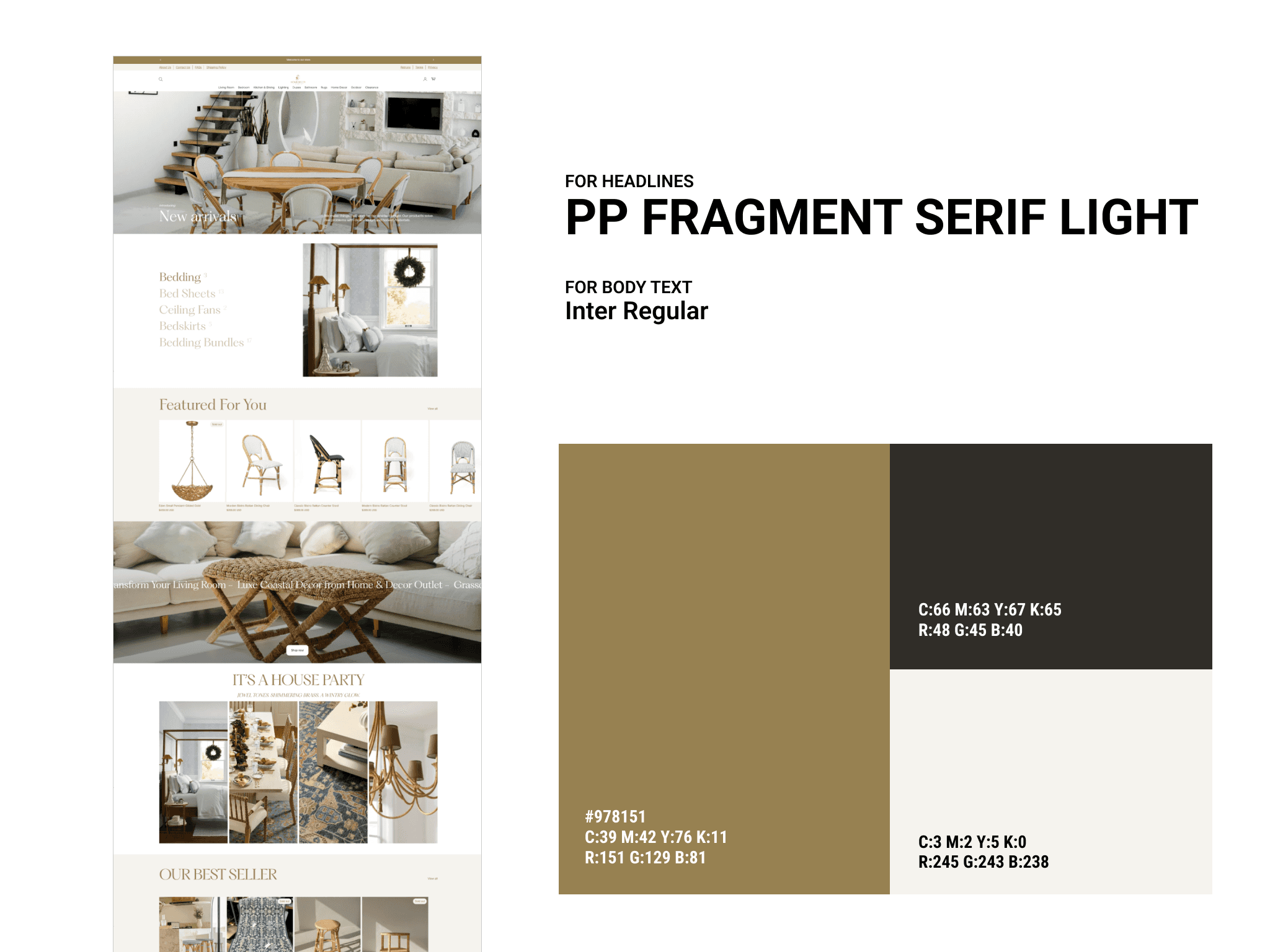 Home Decor is a premium home furnishings and decorative accessories brand offering a curated selection of furniture, textiles, lighting, and objects for customers who care about how their home feels as much as how it looks. The brand occupies the space between mass-market retail and high-end interior design — accessible premium, with a point of view on style rather than just a product catalogue.