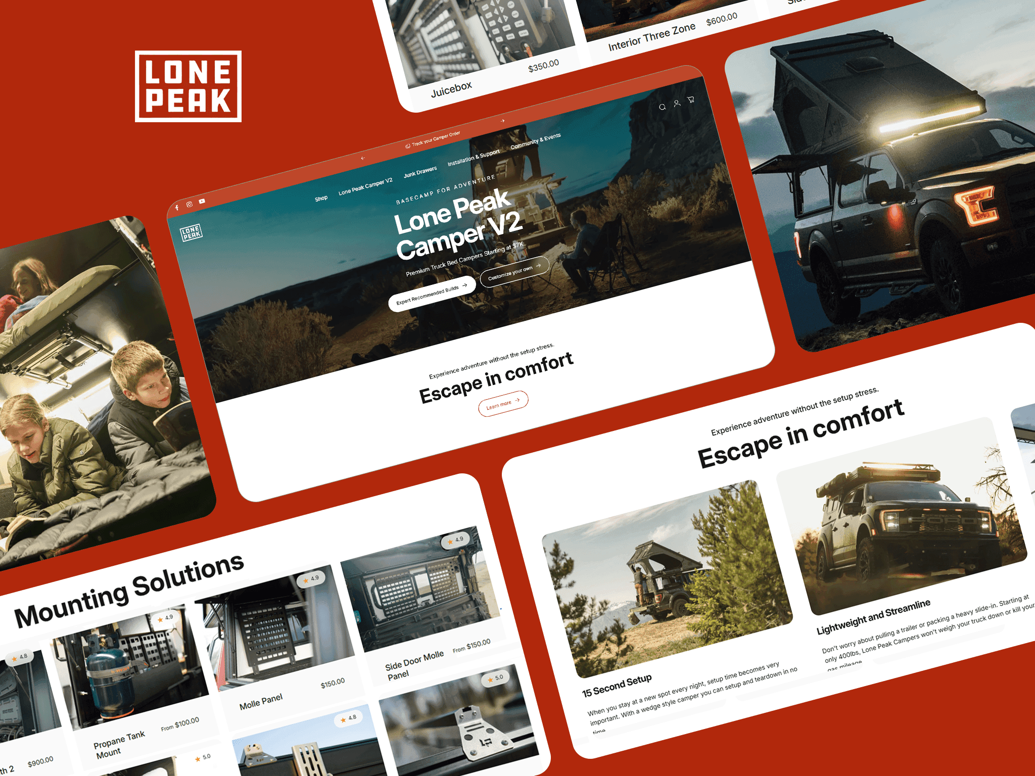 Lone Peak Overland is a premium overlanding and off-road equipment brand offering roof racks, recovery gear, lighting, storage solutions, and expedition accessories for serious off-road adventurers. The brand is built for the overlanding community — drivers who use their 4x4s as expedition vehicles, who camp off-grid for weeks at a time, and who invest seriously in reliable gear because the alternative is being stranded somewhere without cell service.