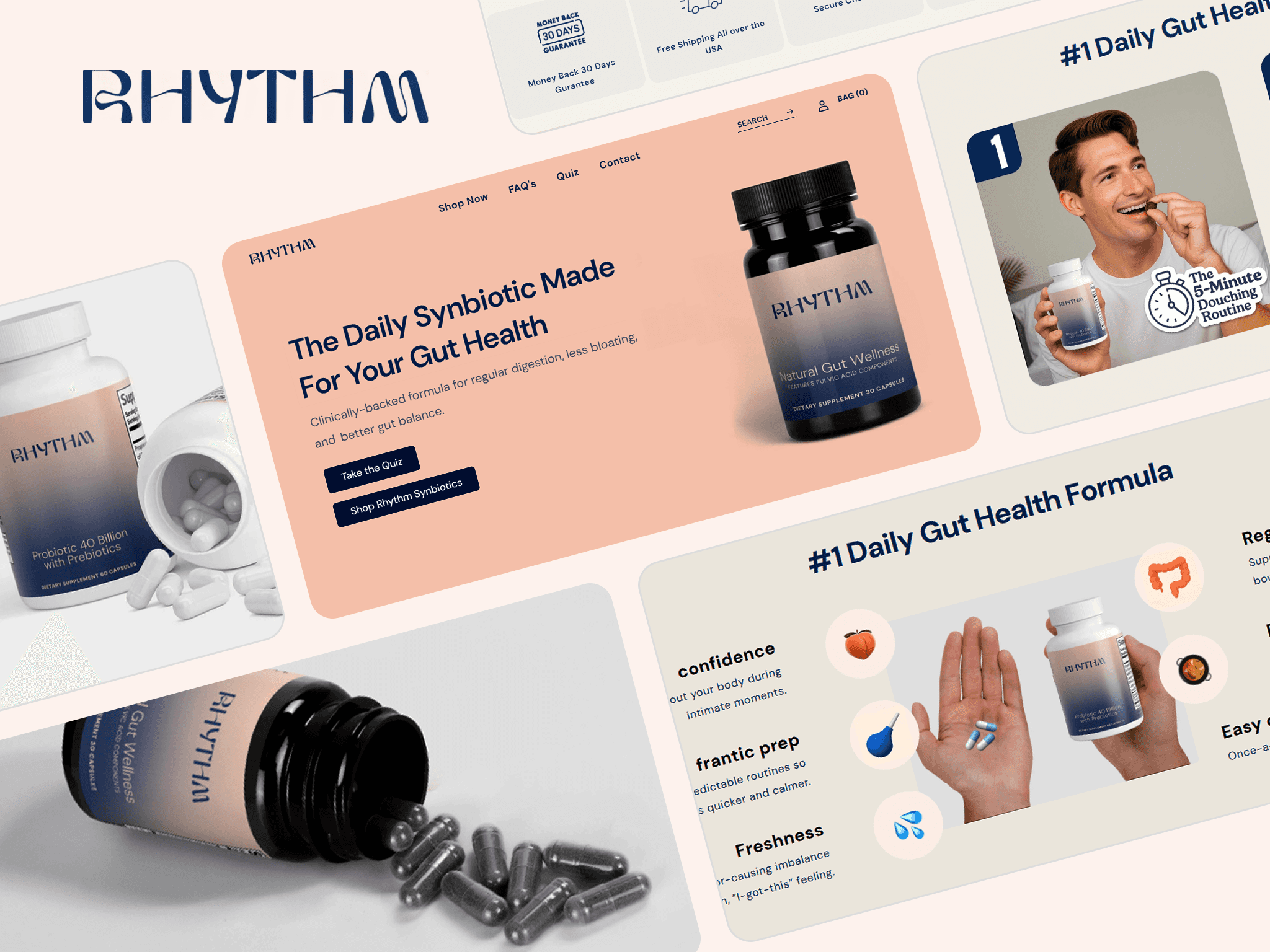 The digestive supplement category is crowded and scepticism is high — most customers have tried products that didn't deliver. Rhythm Supplement had a genuinely differentiated formula and real customer results, but the store wasn't converting that proof into first-time purchases effectively. Trust signals were underutilised, and the product range needed a clearer narrative around why these three supplements work better together.